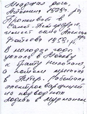 Младшая дочь (Каратаева С.Ф.), Фотьева (Мартусявичене) Антонина Сергеевна. 1939 г.р., проживает в Санкт-Петербурге, имеет сына Алесандра Фотьева (1959 г.р.). В молодые годы уехала в Москву к брату Николаю, а потом переехала в Питер. Работала электросварщицей на подводных лодках в Мурманске.