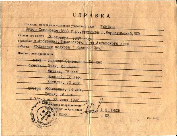 Поляков Федор Семенович Поляков Федор Семенович Прадед - Поляков Федор Семенович (Отец Полякова Николая Федоровича)